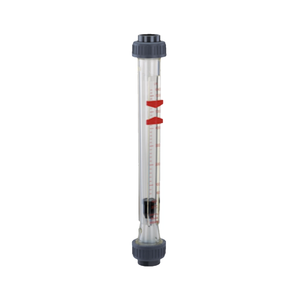 Przepływomierz GEMÜ 800 pracuje wg zasady pływakowej i ma przezroczystą rurkę pomiarową. Skala pomiarowa nadrukowana na rurce pomiarowej jest dostosowana do odpowiedniego czynnika przepływającego przez zawór. Napylone rowki do mocowania typu „jaskółczy ogon” służą do mocowania wskaźników wartości zadanej, urządzeń wskazujących wartości graniczne oraz sygnalizatorów.