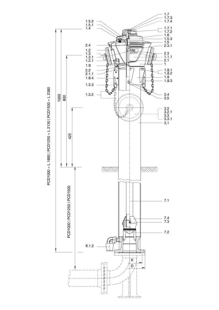 • Standardowa osłona rury: 1,50 m (opcjonalnie 1,25 m i 1,00 m)
