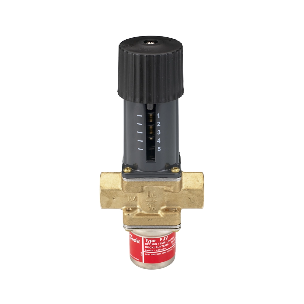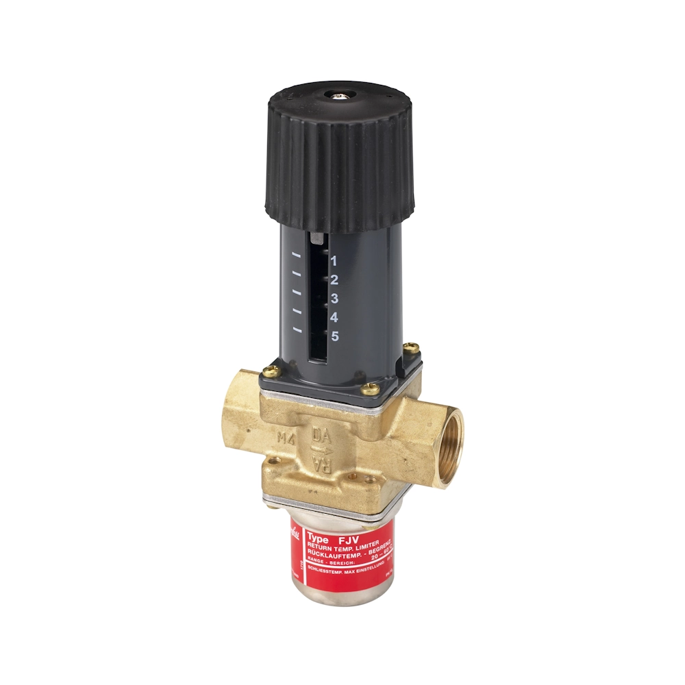 Regulacja FJV polega na wymuszeniu schłodzenia wody powrotnej z instalacji do wymaganej temperatury przed jej powrotem do żródła zasilania. Regulator zamyka się przy rosnącej temperaturze.
