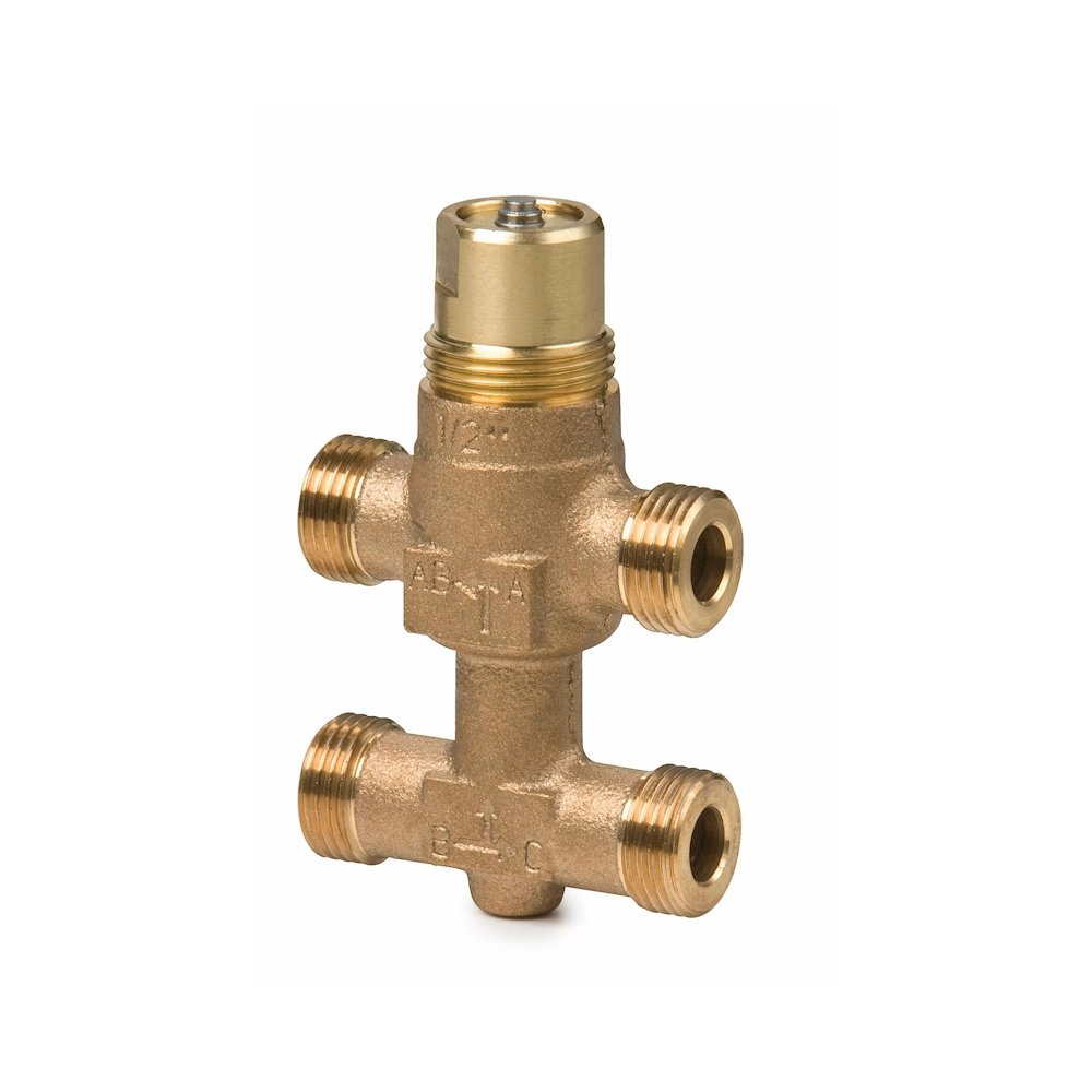Zawory trójdrogowe z obejściem z przyłączami gwintowanymi, do regulacji w urządzeniach przygotowania powietrza, stropach chłodzących i strefach grzewczych.